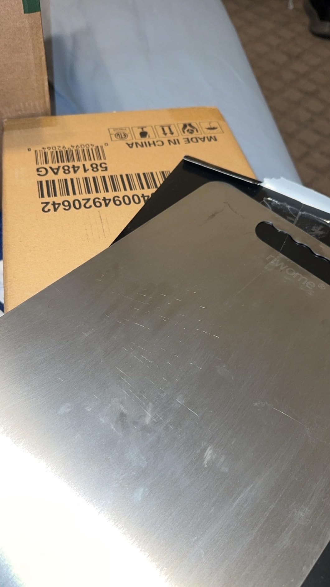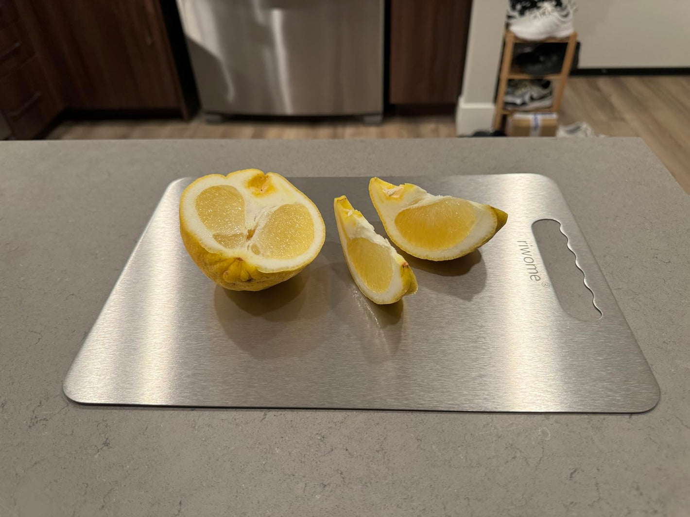 أحب لوح التقطيع هذا كثيرًا! سطحه المصنوع من التيتانيوم ناعم للغاية، ولا يمتص البقع أو الروائح. ملمسه فاخر وسهل التنظيف!